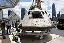 In 1977 the command module was transferred to the Smithsonian Institution by NASA.[22] The command module was moved to the Great Lakes Science Center in Cleveland, Ohio in June 2010.[23][24] It took a year to plan and $120,000 USD to move the capsule.[23] It is currently on display at the visitor's center of the NASA Glenn Research Center at the science center.[25]
