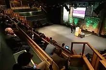 The current Smock Alley Theatre (Irish: Amharclann Scabhat Smock)[1] is a 21st-century theatre in Dublin, converted from a 19th-century church building, incorporating structural material from an 18th-century theatre building, and built on the site of the 17th century Theatre Royal, Dublin. The present theatre was opened in 2012, after a €3.5 million investment.[2]