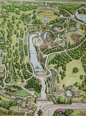 It is one of the world-famous garden-park art creations. There are many scenic areas in the park including waterfalls, fountains, ponds, and a stone garden. It is one of the most famous examples of late 18th or early 19th century European landscape garden design that has been preserved to the present time.