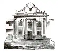 In 1801, the Board of Directors of the South African Society for the Advancement of Christ's Kingdom acquired a property in Long Street, Cape Town, for 50,000 guilders. The existing buildings were demolished and the Sendinggestig built. It was inaugurated on 15 March 1804 by Rev. J.P. Sеrumer of the Dutch Reformed Church's Groote Kerk, Cape Town congregation.[1]
