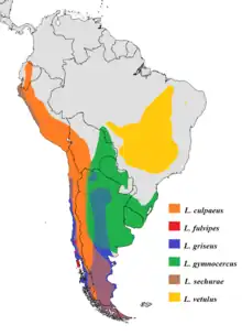 ![]() | Lycalopex griseus | South American gray fox or chilla | Argentina and Chile |