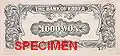 1000 won | 171 × 78 mm | green | Value | July 22, 1950 | National Printing Bureau | ||