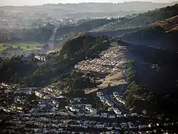 The South San Francisco Hillside Sign is a historic sign on a hillside overlooking the city of South San Francisco in San Mateo County, California. It was created in the 1920s and was listed on the National Register of Historic Places in 1996.[2] The sign is the main feature of Sign Hill Park, a city park which provides 30 acres (12 ha) of open space, almost 2 miles (3.2 km) of hiking trails, and access to the letters of the sign itself.[3]