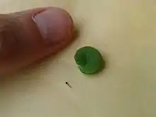 A female's fecundity is dependent on body mass, as females deprived from sucrose during their oviposition period have reduced fecundity. Therefore, heavier females will produce a larger number of eggs.[13] In addition to body mass, the number of eggs laid by a female may also be related to the time spent searching for an oviposition site. The number of eggs laid is inversely proportional to egg size. However, egg size was not found to have any influence on egg or larval survival, larval development time, or pupal weight under experimental conditions. One explanation may be that there is a tradeoff between the number of eggs laid and the time spent searching for the optimal oviposition site. A female would produce more eggs in an optimal environment, so she can produce more offspring and increase her reproductive fitness.[14]