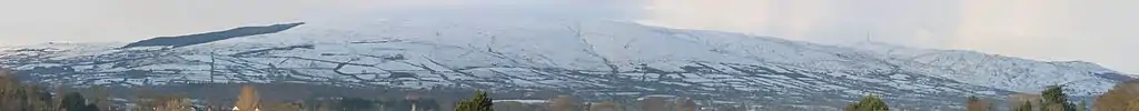 The Sperrins or Sperrin Mountains (Irish: Sliabh Speirín)[3] are a mountain range in Northern Ireland. The range stretches from Strabane and Mullaghcarn in the west, to Slieve Gallion and the Glenshane Pass in the east, in the counties of Tyrone and Londonderry. The landscape is mostly moorland and blanket bog. The region has a population of some 150,000 and is a designated Area of Outstanding Natural Beauty.