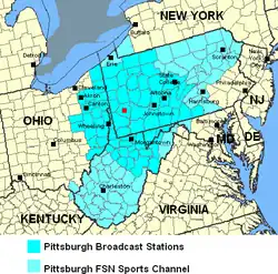 | Broadcast area | Western, Central and Northwestern Pennsylvania West Virginia Eastern Ohio Western Maryland Southwestern New York Worldwide (via satellite) |
