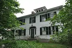 The Squire Chase House is a historic house on Main Street in Fryeburg, Maine. The oldest portion of this house, now a portion of the elongated ell attached to the main block, was built c. 1767 by Nathaniel Merrill, one of the early settlers of Fryeburg after its land was granted to Joseph Frye in 1762. It was sold in 1799 to James Osgood, the son of another early settler. Stephen and Mary (Osgood) Chase inherited this property in 1824, and moved the main block of the house across the street to its present location, and attached the older house to it. The exterior of this house was Federal in styling, although its interior is now Greek Revival in character.[2]