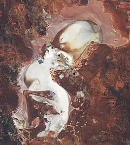![]() Satellite image of Lake Lefroy, with the St Ives Gold Mine near the centre of the image, south of the lake | |