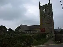 The church of St. Sennen is mediaeval.[3] A visit by members of the Penzance Natural History and Antiquarian Society on their annual excursion in August 1893 resulted in a translation of a Latin inscription on a stone at the base of the font as ″In the year of the Lord 1441 [2, 3, or 4], this Church was dedicated on [the festival of] the beheading of St John the Baptist″.[4] (The feast referred to is celebrated on 29 August.) It is known as the parish church of Land's End and the patron is the Duke of Cornwall.