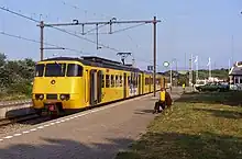 An SGM in original livery at Hoek van Holland Strand railway station, June 1990