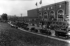 Stansbury Hall was a building on the Downtown Campus of West Virginia University. It was named after Harry Stansbury (died 1966), a former WVU Athletic Director.[1] Opened in 1929 as the WVU Field House, just to the southwest of "Old" Mountaineer Field, this was the home of WVU basketball until 1970, when the WVU Coliseum was opened. This was the home floor during the days of Hot Rod Hundley and Jerry West. It hosted the Southern Conference men's basketball tournament in 1953. While the home venue of WVU basketball, the team compiled a record of 370–81 (.820) when playing there. In October 1973, it was renamed to honor Stansbury.[2]