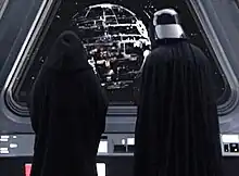 Darth Sidious (left) and Darth Vader (right) oversee the first Death Star construction in Star Wars: Episode III – Revenge of the Sith.