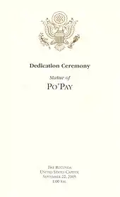Po'pay is a statue of Po’pay (also known as Popé), a Tewa and one of the Pueblo leaders during the Pueblo Revolt against the Spanish in 1680. The statue was carved by Cliff Fragua, a sculptor from Jemez Pueblo, out of a solid block of Tennessee marble.[1]