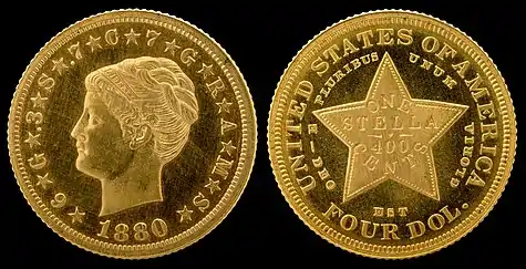 The United States four dollar coin, also officially called a Stella, is a unit of currency equivalent to four United States dollars.