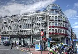 The site of the shopping centre was assembled over 15 years by the Slazenger family, beginning in 1966. In total, more than 150 individual property owners were bought out over that period. Most of the buildings were Georgian, and these were left to fall into disrepair and ruin as plans for an extensive redevelopment of the site as an office block and shopping centre totalling almost half-a-million square feet were drawn up. The original architects were Scott Tallon Walker, and planning permission for their scheme was granted in 1975. During the recession of the late 1970s, the small shops were rented out under a scheme known as "the Gaiety Green". At the weekends, this was marketed as the Dandelion Market, known for its alternative vendors, popular with younger people.[1] U2 played some of their earliest gigs at the market.[2] The market, which closed in 1981, is commemorated with a plaque, while Sinnotts Bar on South King Street is the only trader from the original site that remains.