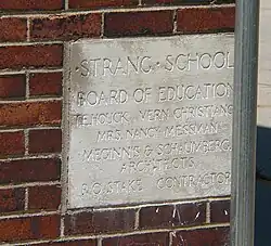Strang School District No. 36, or the Strang Public School, is a historic school located in Fillmore County, Nebraska, in the village of Strang. The school is one of the two sites listed on the National Register of Historic Places in the village of Strang. The school building is a small, two-story, brick public schoolhouse, which was built to replace the schoolhouse that was previously located on that site. The schoolhouse was built between 1929 and 1930, and replaced the previous schoolhouse, which burned down in 1928. The schoolhouse still retains all original building materials.[1] The school served high school students from 1930 to 1951, and still functions as a school today, serving grades K–8.[1] The NRHP listing also includes a flagpole located outside the schoolhouse, and five pieces of playground equipment.