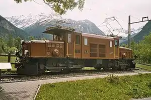 ![]() | Ge 6/6 | 1912-1929 | 402, 406, 407, 411, 414, 415 | Narrow gauge electric locomotive | 0-6-6-0 | Various locations | Built for Rhaetian Railway; gauge 1,000 mm (3 ft 3+3⁄8 in) |