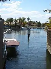 Sylvania Waters Estate was developed by LJ Hooker in the 1960s, with much of the land reclaimed from the bay, effectively destroying the mangrove ecosystem to provide water frontages with boating facilities. James Goyen won the tender to design the estate, construct the houses, and promote the new suburb. Streets of the development were named after Australian rivers – such as Shoalhaven, Tweed, Murrumbidgee, Hawkesbury and Barwon – to emphasize the association with water.[2][3]