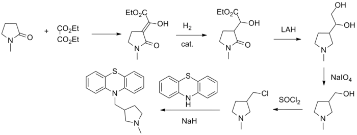 Methdilazine synthesis:[1] R. F. Feldkamp and Y. H. Wu; Mead Johnson & Company; U.S. Patent 2,945,855 (1960).