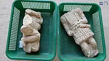 The site was excavated in 5 seasons between 1989 and 1998 by a team from the University of Copenhagen in Denmark led by Daniel Potts.[3][12][13][1][14][15] Work was resumed in 2007 by a joint team from the Bryn Mawr College and the University of Tübingen led by Peter Magee.[16] Initially principally involved in cataloging the existing site, in 2010 large scale excavations were undertaken. A charcoal sample from the base area of the Umm Al Nar fortress tower provided a radiocarbon date of 2461–2199 BC (C14 date 3840±40 BP). It was calibrated with IntCal13.[16][17]