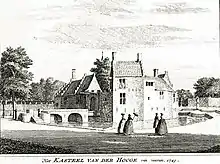 Pieter's son Philips (c. 1586-1662) started to call himself Van Borssele van der Hooghe.[7] His son Pieter van Borssele van der Hooghe died in 1666. The last Van Borssele van der Hooghe that owned the castle, was Philips Joseph, born there in 1669. The Van Borssele van der Hooghe branch founded by Adriaen's oldest son Jan remained Catholic, and was therefore effectively banned from office in Zeeland. Philips Joseph left Zeeland for the Spanish Netherlands.[8]