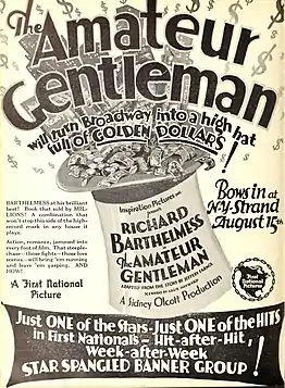 The Amateur Gentleman is a 1926 American silent[1] drama film produced by Inspiration Pictures and distributed through First National Pictures. It was directed by Sidney Olcott as a vehicle for star Richard Barthelmess.[2][3]
