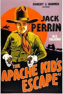 The Apache Kid's Escape is a 1930 American Western film written, produced and directed by Robert J. Horner and starring Jack Perrin and his wife Josephine Hill.[1] It was a remake of The White Outlaw (1929). The film was shot in Valencia, California.[2] Jack Perrin's five-picture deal with Horner ended up in court when Perrin only received $1,425 out of the $2,900 that was agreed upon.[3]