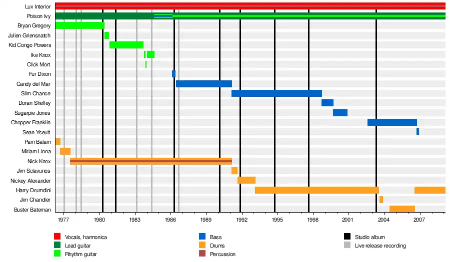 • Lux Interior (Erick Purkhiser) – vocals, harmonica, percussion (1976–2009; until his death)
