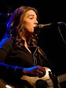 In July 2019, the Highwomen performed their first ever full live set at the 60th annual Newport Folk Festival, previewing songs from their upcoming album including "If She Ever Leaves Me", written by Shires, her husband Jason Isbell and Chris Thompkins.[12] With Carlile on lead vocals, Isbell described it as "the first gay country song" which elicited applause from the audience. Other songs performed included "My Only Child", an ode to "suburban moms" performed by Hemby who wrote the track with Shires and Miranda Lambert, "Loose Change", a nod to 70s country written by Morris, Daniel Layus of Augustana, and Maggie Chapman, featuring Morris on lead vocals and "Cocktail and a Song" which was written solely by Shires in honor of her father. Carlile later invited the rest of the Highwomen to join her during her headlining set where, as they originally intended, the group performed alongside other female artists including Amy Ray, Courtney Marie Andrews, Dolly Parton, Jade Bird, Judy Collins, Linda Perry, Lucy Dacus, Our Native Daughters, Sheryl Crow, The First Ladies of Bluegrass, and Yola Carter.[7][13][14] Shires said the plan was always to debut their music at Newport with Dolly Parton. The band wore custom suits by Manuel.[7]