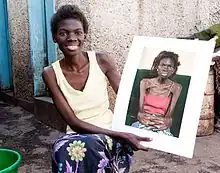 ![]() Concillia Muhau, who is featured in the film, with an earlier picture of herself[1] | |