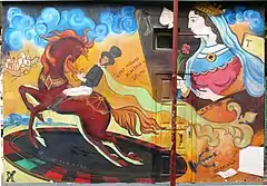 The countess was inspired by Princess Natalya Petrovna Golitsyna, who served as lady-in-waiting for five Russian emperors and was 92 at the time Pushkin wrote "The Queen of Spades".[4] According to a legend, Golitsyna had been a successful gambler. When her grandson lost a considerable amount of money playing cards and came to her to beg her for money, Golitsyna instead revealed to him the secret three cards that Count Saint-Germain showed to her in Paris.[5] However, while the Countess died in the story, Golitsyna outlived Pushkin and reached the age of 97.[6]