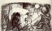 Karl Rahm insisted that the "prominent" prisoners of Theresienstadt be filmed, and pressed Gerron to include more of them in his shots.[20] Among the "prominents" who appeared were Jo Spier, Max Friediger, Paul Eppstein, and Leo Baeck.[24] The SS also insisted that the film's soundtrack consist exclusively of Jewish composers.[29][lower-alpha 3] According to España, the film itself is of good technical quality,[25] and the focus on leisure activities creates an "atmosphere of a perpetual party".[lower-alpha 4] Margry states that the narration was "the main truth-distorting element", but nevertheless included some factual information.[23] According to Margry, historians have exaggerated the falseness of the film. Although Theresienstadt as a whole is "a vicious work of propaganda", "the visual authenticity" of the film is greater than many commentators have written, and the film accurately depicts some elements of daily life in the ghetto.[23] Margry argues that "the film's blatant dishonesty turns on what it did not show: the hunger, the misery, the overcrowding, the slave work for the German war economy, the high death rate, and, most of all, the transports leaving for the East".[23]