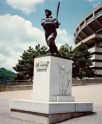 Ground was broken in 1968 on April 25,[15][19][20] and due to the Steelers' suggestions, the design was changed to enclose center field.[15] Construction continued, though it became plagued with problems such as thieves stealing materials from the building site.[15] In April 1969, construction was behind schedule and the target opening date of April 1970 was deemed unlikely to be met.[21] That November, Arthur Gratz asked the city for an additional $3 million ($23.9 million today), which was granted.[22] In January 1970, the new target date was set for May 29; however, because of a failure to install the lights on schedule, opening day was delayed once more to July 16.[22] The stadium was named in February 1969 for its location at the confluence of the Allegheny River and Monongahela River, which forms the Ohio River.[23][24] It would sometimes be called The House That Clemente Built after Pirates' right-fielder Roberto Clemente.[25]