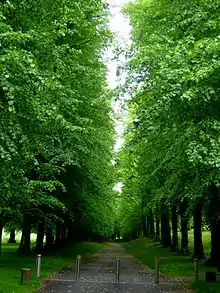 One long-lived example was the "Malmvik lime", planted as a sapling near the Malmvik Manor in Stockholm, Sweden in 1618. The tree existed for 381 years until the last part of the tree fell in a storm in 1999.[6] The UK Tree Register Champion is at Aysgarth, Yorkshire, measuring 26 m (85 ft) in height and 295 cm (9 ft 8 in) diameter at breast height in 2009.[7] The tree in front of Augustusburg Hunting Lodge in Saxony was planted in 1421 according to the chronicles of Augustusburg.[8] Some 13 limes were planted at Mullary cemetery Co Louth Ireland to commemorate "king Billy's" victory at the battle of the Boyne in circa 1669 as lime are not native to Ireland and they were planted to mark the foreign victory, they remain standing today.