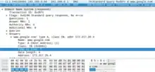 TTL of a DNS answer resolving google.com, seen in Wireshark