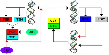 - ↑ Lee C, Parikh V, Itsukaichi T, Bae K, Edery I (March 1996). "Resetting the Drosophila clock by photic regulation of PER and a PER-TIM complex". Science. 271 (5256): 1740–4. Bibcode:1996Sci...271.1740L. doi:10.1126/science.271.5256.1740. PMID 8596938. S2CID 24416627.