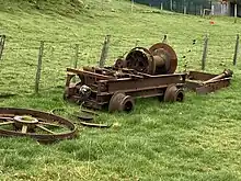 There were several sawmills, milling trees such as rimu.[30] Bauchop's mill burnt down in 1912[31] and narrowly escaped another fire in 1917.[32] There were 3 timber mills in 1921.[33] Some of the sawmills were linked to their bush by tramways, between at least 1902[34] and 1925.[35] One extended 2.5 km (1.6 mi) from the railway station towards Waikawa.[36]