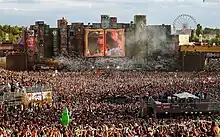 The mainstage is the festival's centrepiece and has grown and evolved from its debut with the festival itself in 2005. Since then, it has become the largest and most elaborate stage of any festival across the globe. The mainstage features all the headline artists, and continues with sets until 1 a.m. Its design changes each year and, since 2009, has been based on the festival theme for the year (for images of some of these designs, see the "History" section). In 2022, the largest mainstage so far, 270 m (890 ft) wide end 53 m (174 ft) high, was built.[65]
