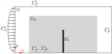 Sketch of the well-known wall problem. The objective of the design problem is to minimize the structural compliance.