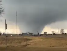 ![]() The Winterset EF4 tornado at peak intensity to the southwest of town. | |