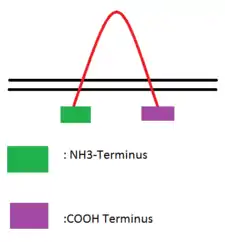 An hypothesis for transmembrane direction is the N terminus and C terminus to remain within the cell, and the loop to stick out of the membrane into the cytosol, presented in the adjacent image.