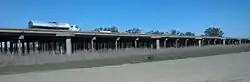 Following the I-5 junction, US 50 runs on a freeway section commonly referred to as the WX Freeway[3] due to it being flanked by the parallel one-way W & X Streets, along the south side of Downtown Sacramento. This part of the freeway is also built upon a raised embankment, to allow the many city streets to pass under it. The route then hits an interchange with a crossing freeway where Business 80 is the route heading north, and SR 99 is the route heading south.
