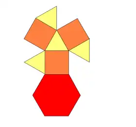 | Faces | 4 triangles 3 squares 1 hexagon |