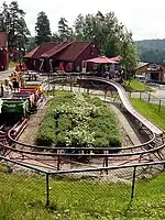 Dvergbanen Steel roller coaster SBF Visa Group 1996 Claims to be the "smallest roller coaster in the world" at 2.5 m high, 26 m long, and with a top speed of 6 km/h.[1]