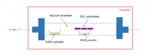 2D semiconductor materials are often synthesized using a chemical vapor deposition (CVD) method. Because CVD can provide large-area, high-quality, and well-controlled layered growth of 2D semiconductor materials, it also allows synthesis of two-dimensional heterojunctions.[13] When building devices by stacking different 2D materials, mechanical exfoliation followed by transferring is often used.[4][6] Other possible synthesis methods include electrochemical deposition,[14][15] chemical exfoliation, hydrothermal synthesis, and thermal decomposition. In 2008 cadmium selenide CdSe quasi 2D platelets were first synthesized by colloidal method with thicknesses of several atomic layers and lateral sizes up to dozens of nanometers.[16] Modification of the procedure allowed to obtain other nanoparticles with different compositions (like CdTe,[17] HgSe,[18] CdSexS1βˆ’x alloys,[19] core/shell[20] and core/crown [21] heterostructures) and shapes (as scrolls,[22] nanoribbons,[23] etc).