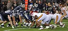 The UConn Huskies football team is a college football team that represents the University of Connecticut in the sport of American football. The team competes in NCAA Division I FBS as an independent. Connecticut first fielded a team in 1896, and participated in Division I-AA until 1999. The Huskies began their two-year Division I-A transition period in 2000, and became a full-fledged Division I-A team in 2002. From 2000 to 2003, the team played as an independent. The school's football team then joined the conference of its other sport teams, the Big East (later named the American Athletic Conference (AAC) in 2013), taking effect in 2004, through 2019. In 2019, the UConn football team left the American to again play as an independent, as the school's current primary conference, the current Big East, does not sponsor the sport. The Huskies currently are coached by Jim Mora.[2]
