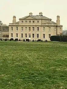 The Hall is a Grade I listed building.[1] The house is built of ashlar, the central five bays of three storeys with two-bay flanking wings on both sides, each of two storeys. At the front is a central pedimented porch with Tuscan columns. The Hall stands in a gravelled courtyard with the entrance façade facing the village street and with parkland to the rear.