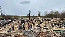 Church of the Ascension of the Ukrainian Orthodox Church in Lukianivka destroyed by Russian troops during Russia's failed Kyiv offensive of February – April 2022[76][77][78]