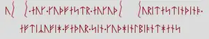 - Ulfr ok Guðfastr ok Guðmundr þ[eir l]étu rétta stein þenna eptir Ófeig, fôður sinn. Guð hjalpi ônd h[a]ns.[5]