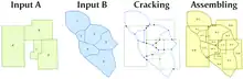 Illustration of the steps in computing a polygon overlay in a geographic information system
